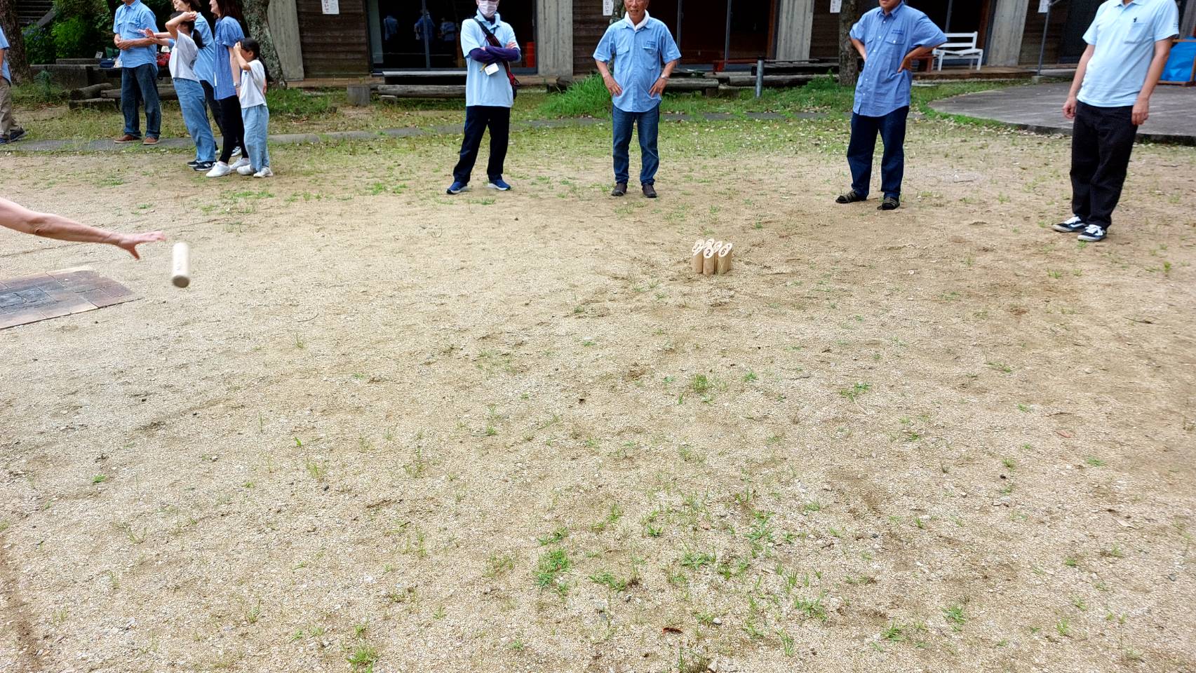 雨も上がって午後からは外でモルック。