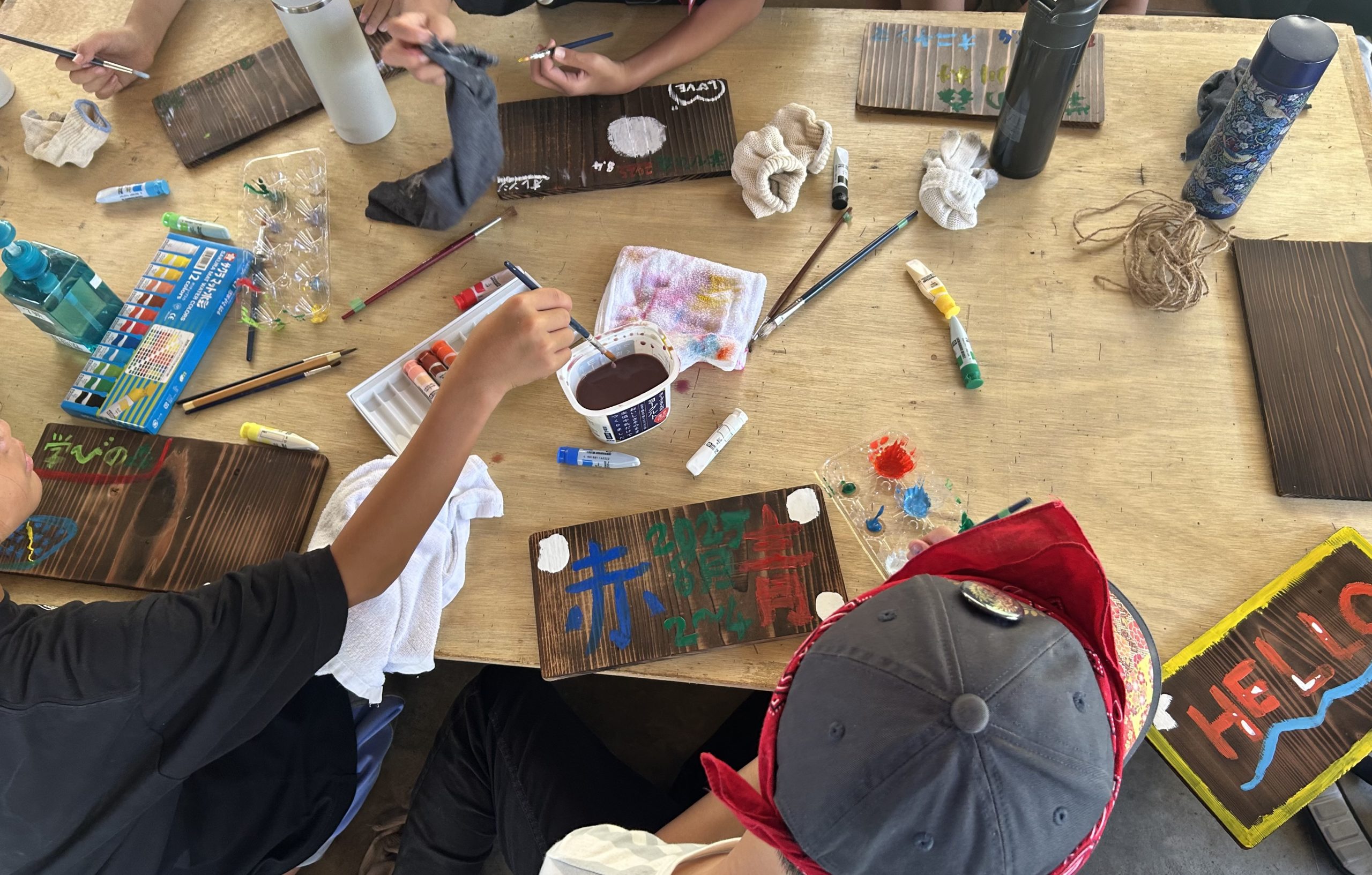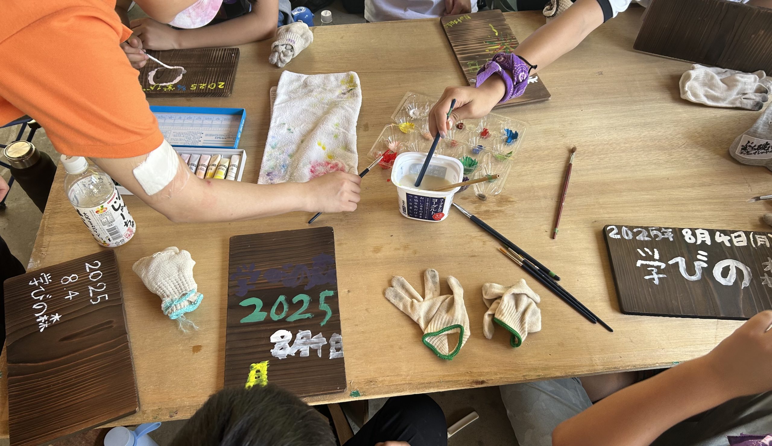 朝食をとると次は思い出づくりとして焼き板製作に取り組みました