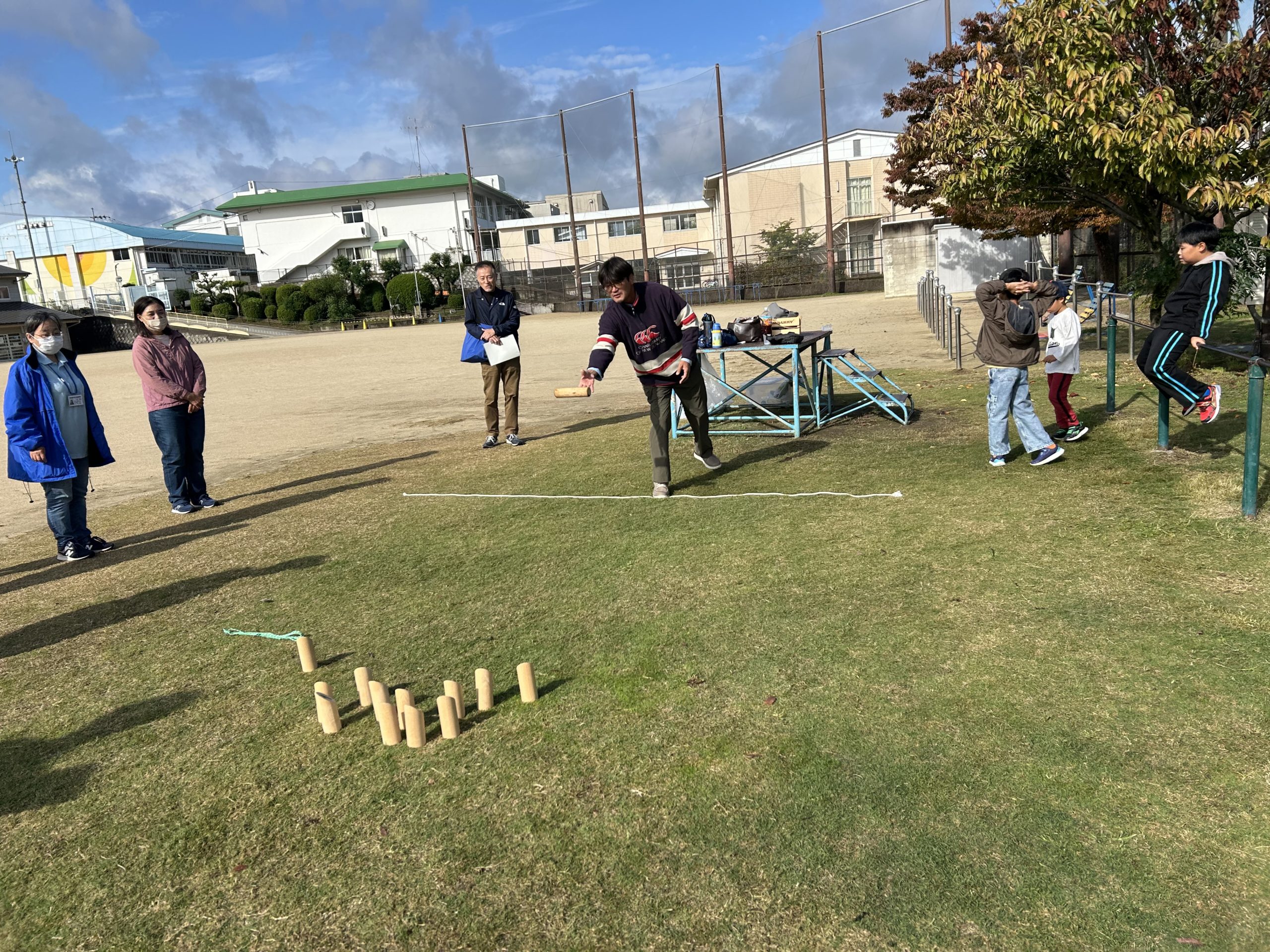 令和7年(2025年)11月1日(土)、楽習室「モルック」を、午前は千代田小学校で、午後は楠小学校で実施しました