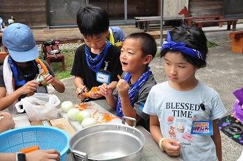 クラフト作り後は、班毎に昼食の「カレーライス」作り。