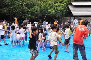 水着等に着替えて水風船を使っての「水遊び」。