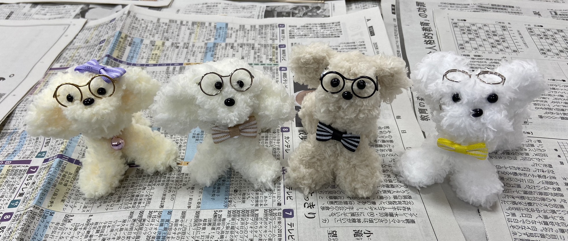 毛足の長いモールを指に巻きつけ、捻ったり、曲げたりして、犬の姿に作り上げていきました。