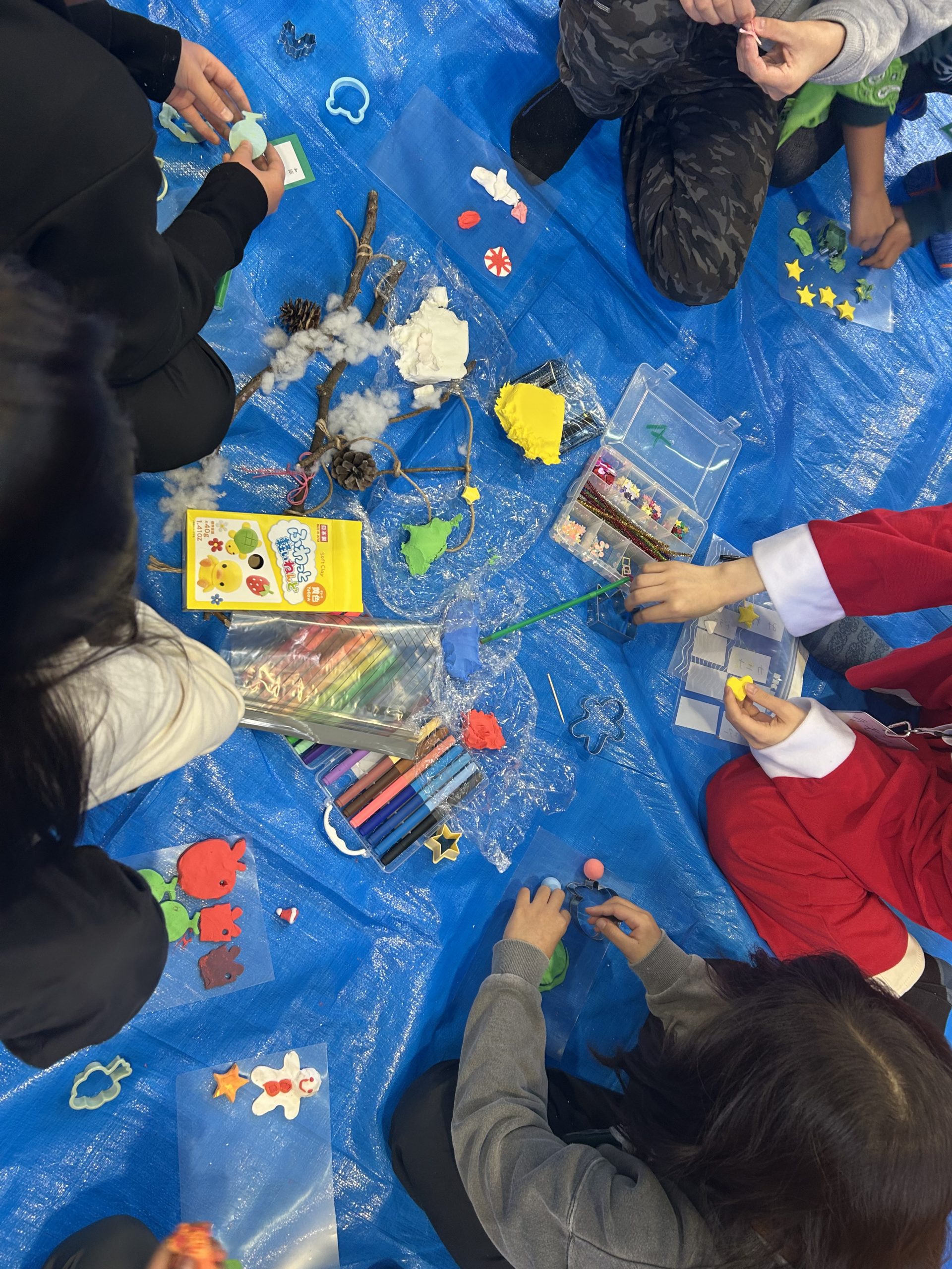 次はクリスマスツリーに飾るオーナメントを色紙粘土でつくります(飾るのは明日)