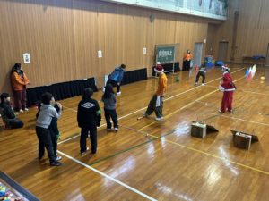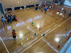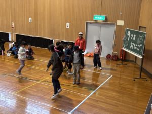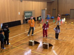 入室したら夕食の前に大運動会(障害物競走、9マスおにご、ゼスチャーゲーム)です