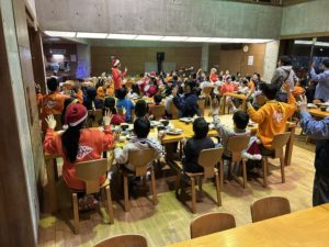 クリスマス仕様の飾りつけのもと、キャンプゲームで盛り上がり、最後にキャンドルを囲んで雰囲気を味わいました