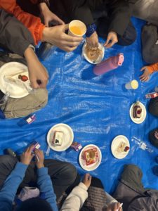 クリスマスキャンプ1日めの夕方、日が暮れて冷えてきました
