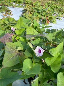 10月19日、健全育成会の「さつま芋掘り」に43名が参加。酷暑の影響で芋は小ぶりでしたが、珍しい「さつま芋の花」が咲き、試食も楽しみました。